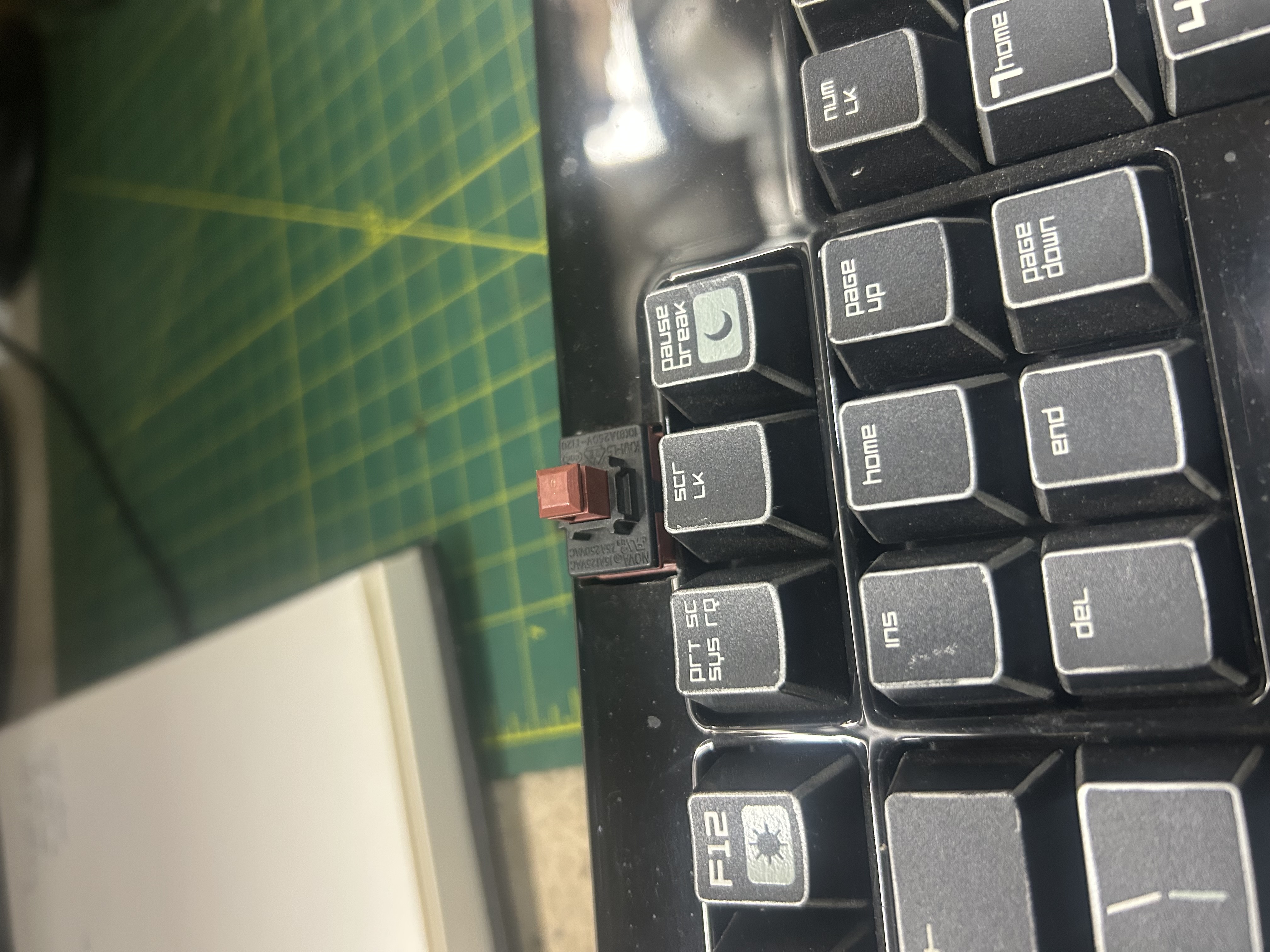 My next (and final) idea was to add a button to my keyboard. A kill-switch, if you will. When I want my keyboard to stop being connected, I just press the button.